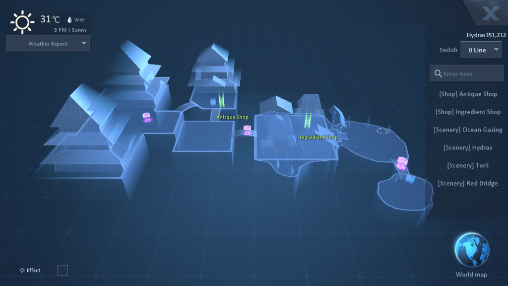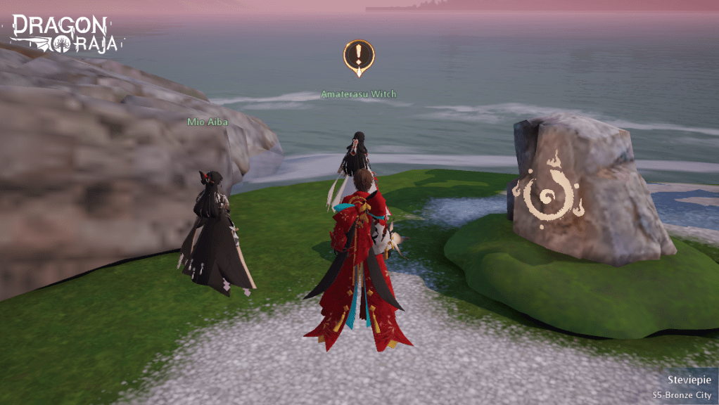 Now you must go find Amaterasu in Hydra and talk to her. She should have an exclamation mark when you talk to her, and Steve believe she shows up around 4PM to 6PM (these were the times listed in the quest itself by Eva), but Steve didn’t see her until 5PM (in-game time). You can find Amaterasu under the cherry blossom tree and near a rock with a glowing symbol on it after you walk out of the spawn area of Hydra.This is near the coordinates of 351,212.