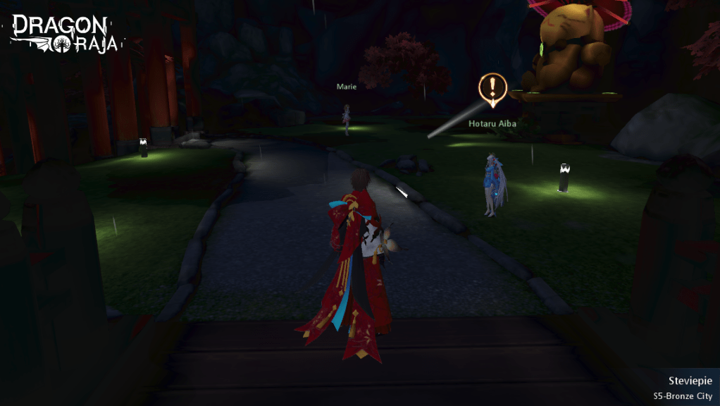 Interacting with the rock will bring you to another scene where you will have a boss fight after a small scene. Simply drop the Red Magatama on Hotaru by interacting with her and it will start the fight. It will be easy fight as Hotaru doesn’t do much damage, but midway through when Hotaru has half health, a nightmare will spawn. You must kill the nightmare, Ichiro Aiba, that spawns in order to protect Hotaru. It kills Hotaru fairly quickly and you will die when you fail, but you get to repeat it until you succeed by tapping the Continue on your quest in your quest log. You will need a fair amount of DPS in order to take out the nightmare who only focuses on killing Hotaru. Do note you can knock the nightmare Ichiro Aiba away. Steve’s assassin melee managed to keep knocking him back on every basic attack until he was way out of the circle.