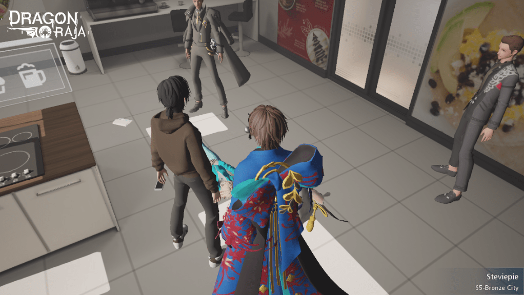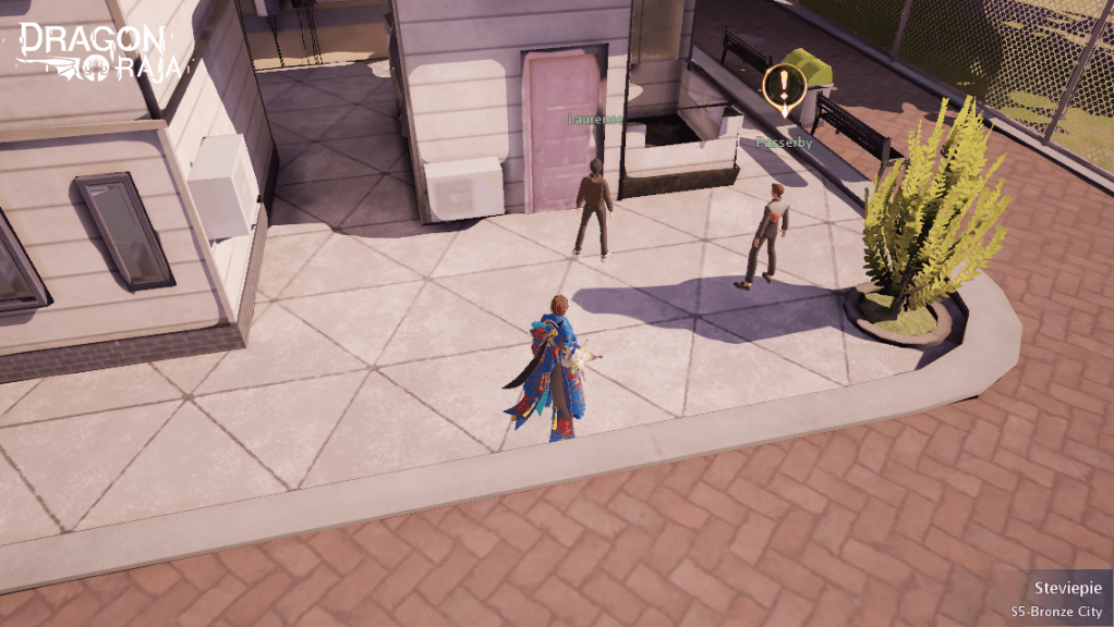 Talk to the security NPC after which a hint should tell you to follow them. You can now leave the bar (through the doors) and you should find footprints on the ground outside. Simply follow the footprints and it should lead you all the way back to the front of Aiko’s house (or simply head over to Aiko’s house and ignore footprints). Tap on or stand on the last set of footsteps and an exclamation mark should pop up over the passerby.