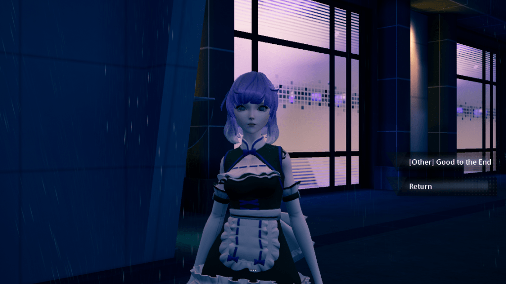 On the next rainy night, an NPC named Sasa Sakurai will appear near the phone booth near the Moon Realm label on the mini-map, near the coordinates 415,560. Talk to her and go through her dialogues. Continue to talk to her to reveal dialogue choices. Simply choose the dialogue choices (except return) and go through the dialogues until there are no more dialogue. Note that new dialogue choices will appear when first set is completely gone.