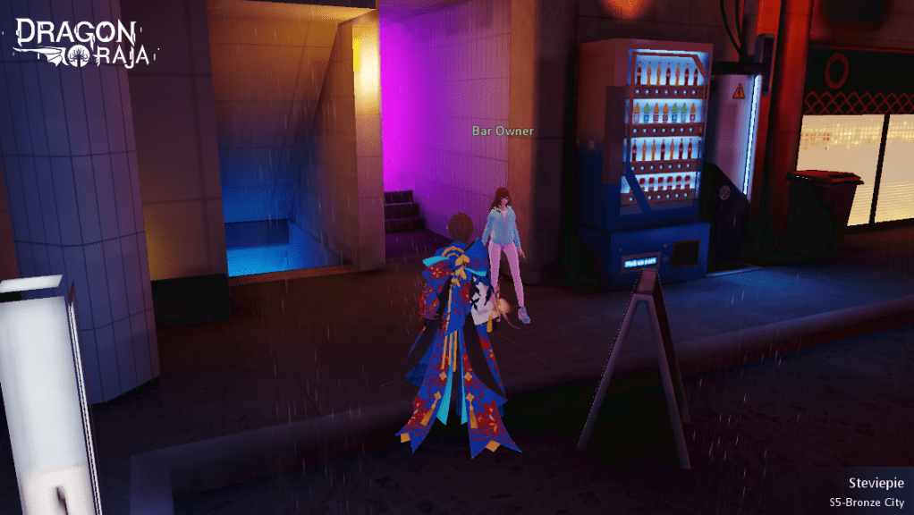 Now if you check Eva, she will give you a long hint. To check Sasa’s workplace, head over to the bar in the alley (usually where two NPC stand Director Tamura and Waiter Eita stand). On a rainy night, the bar waitress should spawn near the coordinates 465,400. Talk to her and inquire about Sasa Sakurai.