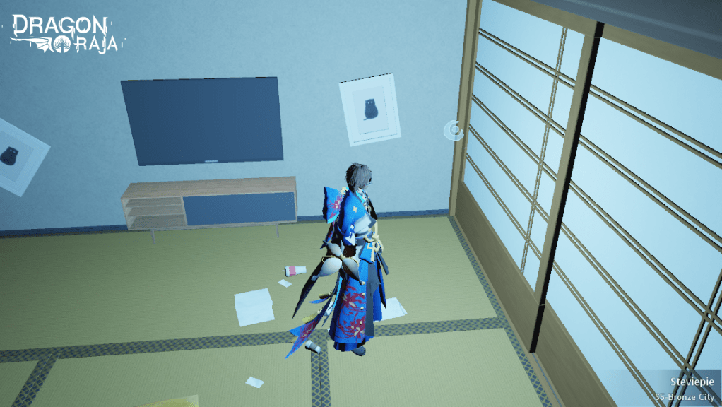 You will now be teleported to a secret room look-alike. It will be dark in here, so turn on your vision (you will need it soon anyways). Defeat the waves of enemies that spawn. Afterwards, Sasa will escape. Now you must investigate the room. Go towards the pile of scattered papers on the ground by the television and interact with it (interact again to read note if you want). There will also be a devil clan mark behind the screen on the wall next to the door you came in from. Interact with that as well. You can also interact with a briefcase on the ground near the pile in the corner. Interact with all three just in case they are needed for the NPC to show up in the next part of the quest.