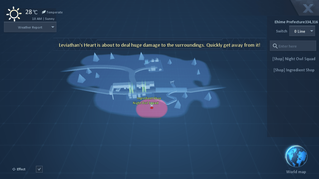 At level 85 or above (boss is out in open but you need to be at least level 85 to get rewards), you can head over to Ehime Prefecture at the in-game times of 11:30, 15:30, 19:30, and 23:30 to fight the whale boss near the coordinates 335,315. Similarly to the previous world boss events, this event also has two phases.