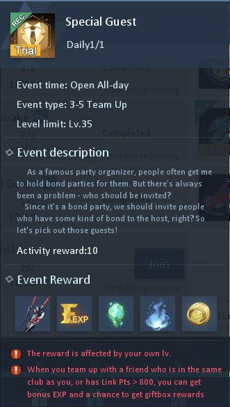 The Special Guest event is a 3-5 team up event that occurs throughout every day for players level 35 and above. The event involves exploring the Cassell College look-alike map and looking for NPCs who will give you a quiz. The questions being asked will usually pertain to the Dragon Raja game’s characters and their relationship with other characters. Answering wrong will incur a penalty that buffs the monsters or weakens the players, which causes the event to take a longer time to do. It’s fine when you are strong enough, but it’s always good to know the answers.