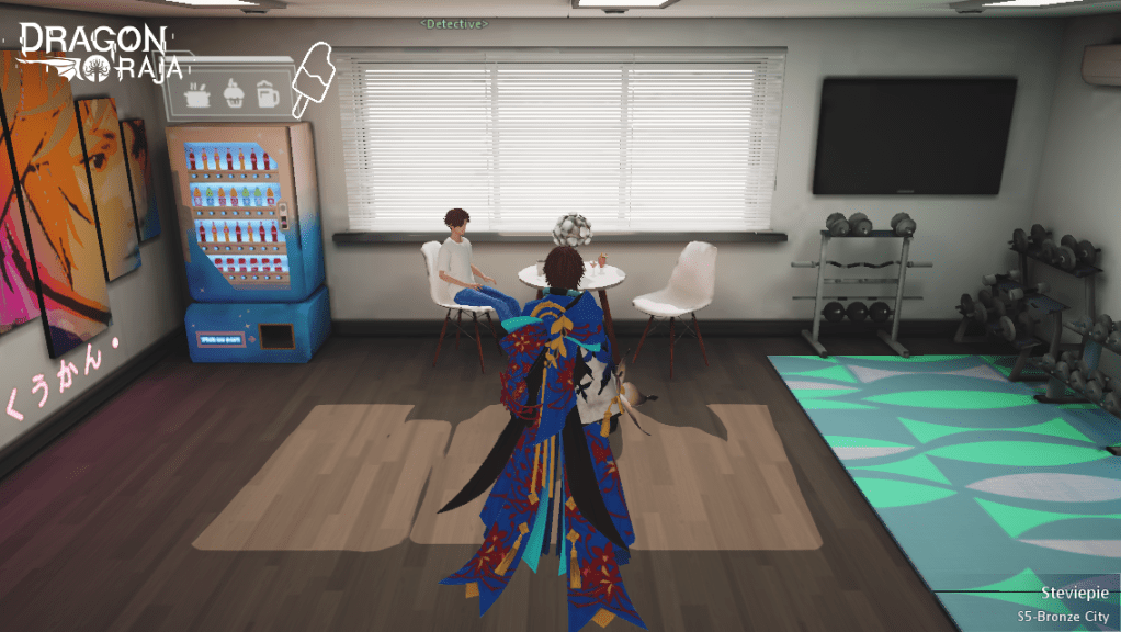 Simply head back to the spawn point (by the car display area) and head to the vending machines towards the right. You should be able to enter the detective agency by interacting with the door near the coordinates 360,450. Talk to the detective at the back of the room. Disregarding your choice, you still will need to be tested. Interact with the chair to start the test (which is a mini-game where you guess the three objects).