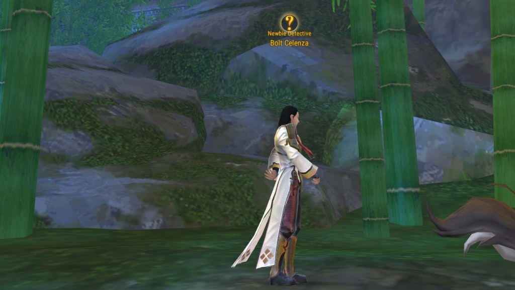 Greet (action emote) Bolt Celenza to trigger the quest. Talk to Bolt Celenza and investigate the scene (talk to suspect, interact with body, interact with campfire). Then, answer Bolt Celenza’s questions correctly.