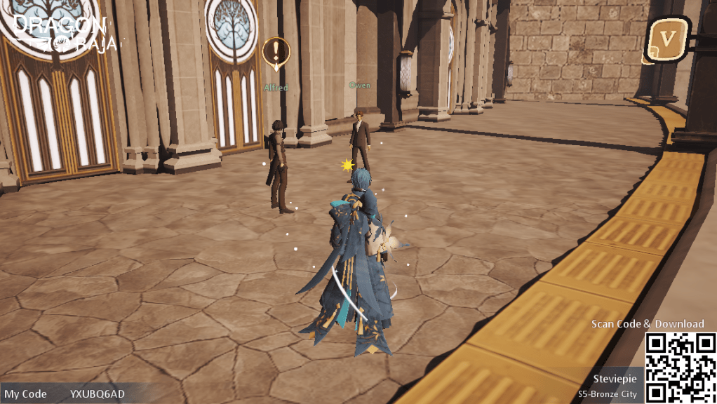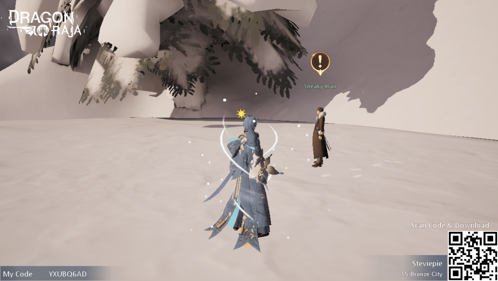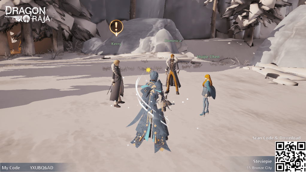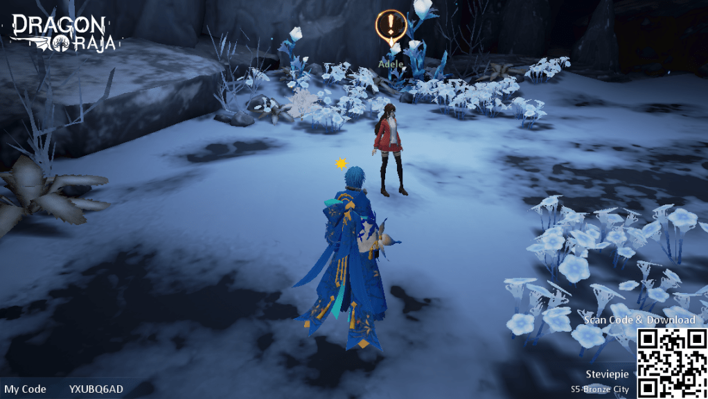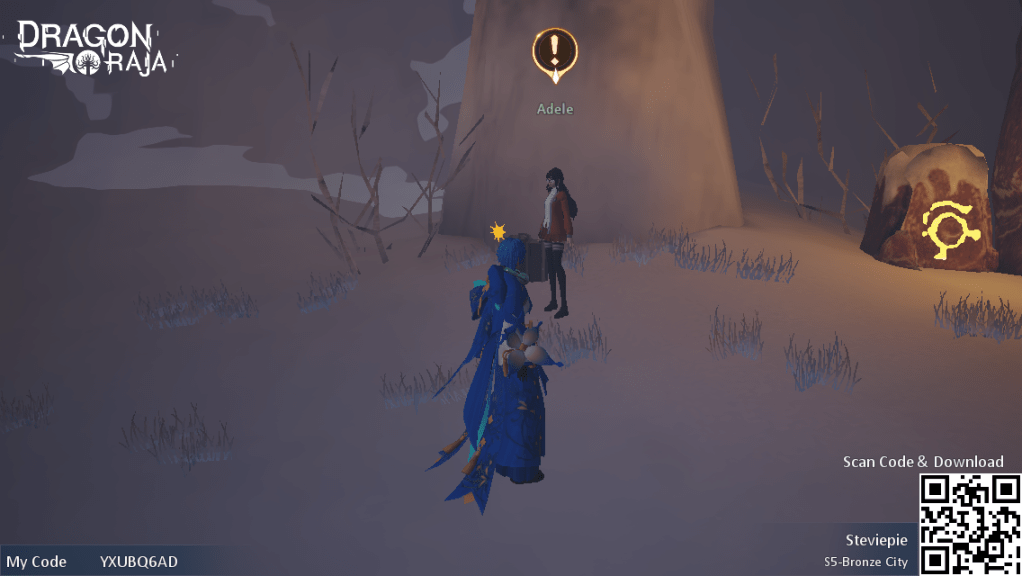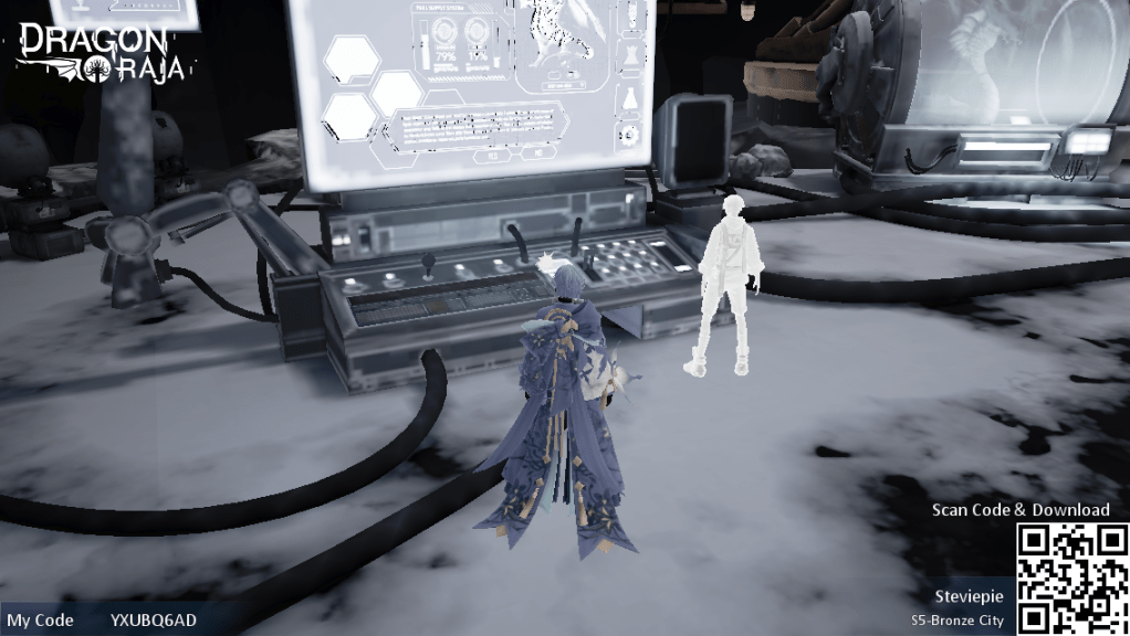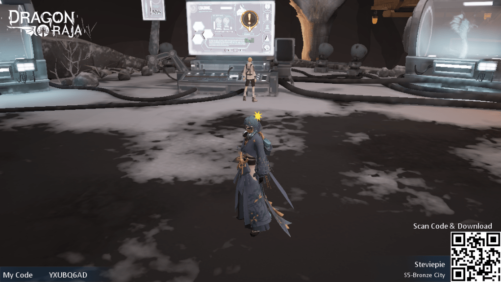 Use the cup of time to enter an icy Lair look-alike. Now, you should go interact with the objects that you interacted with in the time warped dimension. Talk to the NPC Ryan (with quest mark) nearby. Talk to NPC Bell (with quest mark) at the computers. Then, interact with Bell’s mobile phone next to him and go through the dialogue (you will need to tap and choose to reply). Interact with the pair of machines that you found in the mini-game dungeon. You will see Bell be killed afterwards (by monster).