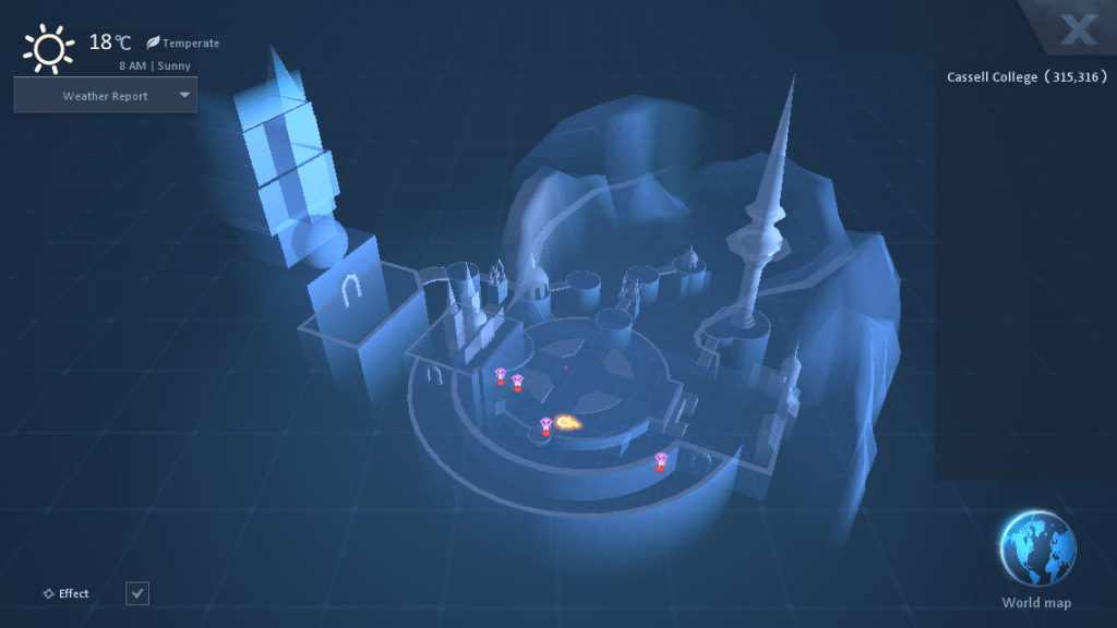 You will be able to find a blank NPC sitting by a tree (between principal’s office and the helipad) near the coordinates 300,245. You can also find two blank standing NPCs between helipad and principal’s office near the coordinates 300,260. Head onto the helipad where there will be two blank NPCs and interact with the sparks at the center of the helipad near the coordinates 330,310. You can fly down to the train station area below to find two blank NPCs near the coordinates 330,405. The final time anchor can be found on the helipad afterwards.