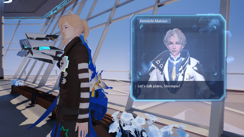 Go through the dialogue (and talk to McHale again if you chose Kennichi) and then head over to the holographic projection of the city near the coordinates 35,50 to find Kennichi (with a quest mark). Talk to Kennichi and go through the dialogue.