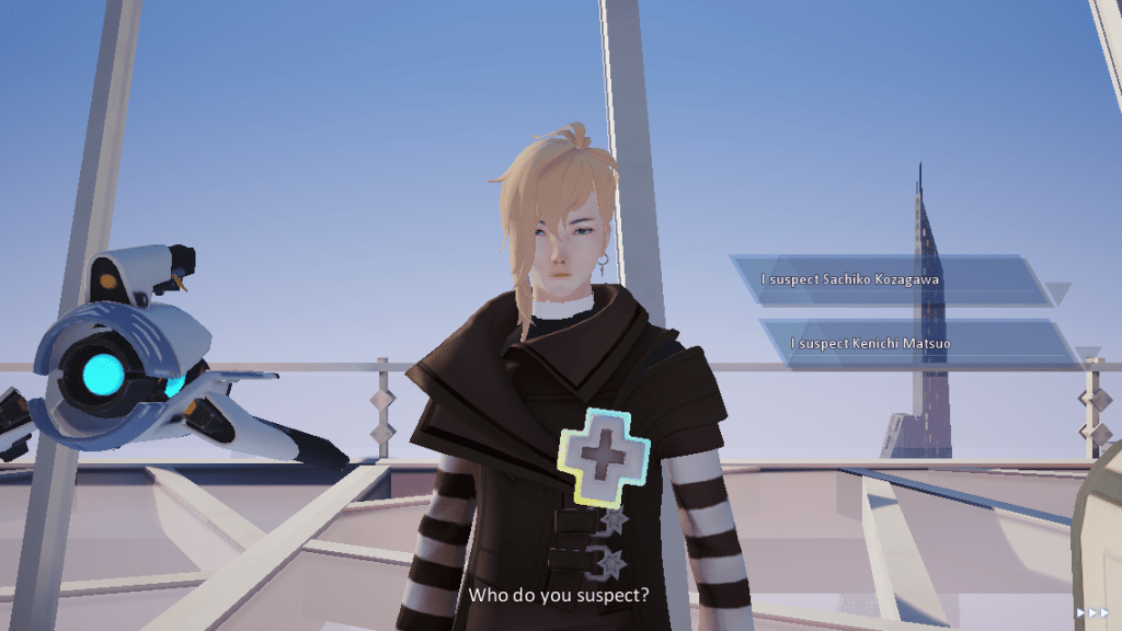 Go through the dialogue and interact with the investigation report on the bench. Then, talk to McHale and go through the dialogue. Then, talk to McHale again and choose the person you suspect between Kennichi and Sachiko. Afterwards, Kennichi will pop up in the communication interface.