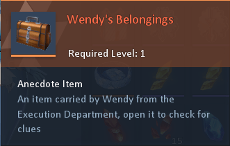 You will then get an item called Wendy’s Belongings. Use the item to get an Identity Card and Wendy’s Notebook. Use the Identity Card to be teleported into a party house look-alike.