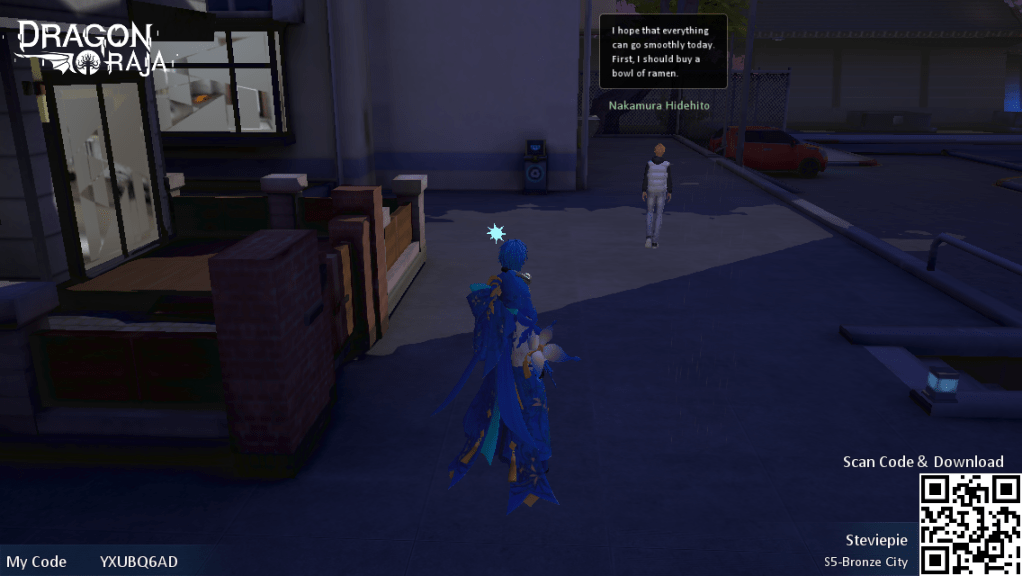 Now go to Chizuru and head to the house area facing where the cafe NPC stands (near the coordinates 160,145). There should be some sparks on the ground by the corner of the center house. Interact with it and Nakamura Hidehito NPC will spawn nearby.