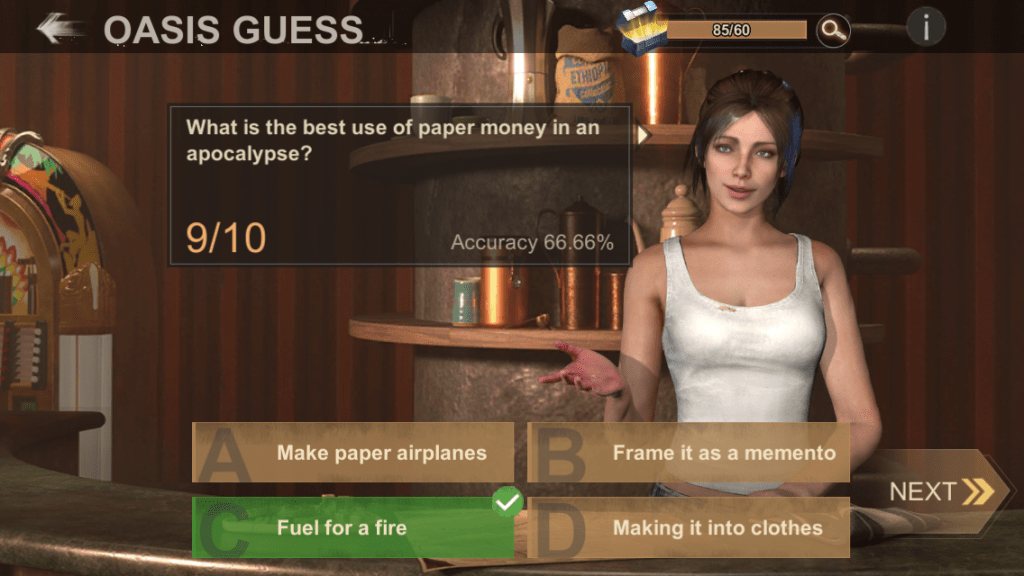 The State of Survival Oasis event is a multiple choice quiz that happens daily during the event period. The questions being asked will usually pertain to the State of Survival game’s characters, some common Z-day survival skills, and the television series The Walking Dead. There will be 10 questions daily, and answering correctly will grant you some points in the progress towards a State of Survival Oasis event lootbox. Answering wrong will incur no punishment besides slowing down your progress towards the next lootbox.